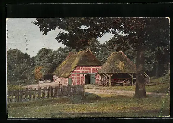 Ölgemälde-Imitations-AK Erpaco-Kunstverlag Nr. 8 /1: Heidehäuser, Kleines Bauernhaus