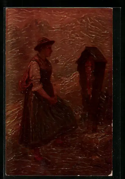 Ölgemälde-Imitations-AK Imita / A.S.-M. Leipzig Nr. 223: Frau am Feldkreuz