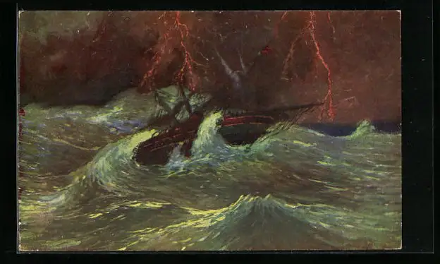 Ölgemälde-Imitations-AK Imita / A.S.-M. Leipzig Nr. 569: Segelboot auf hoher See bei Sturm