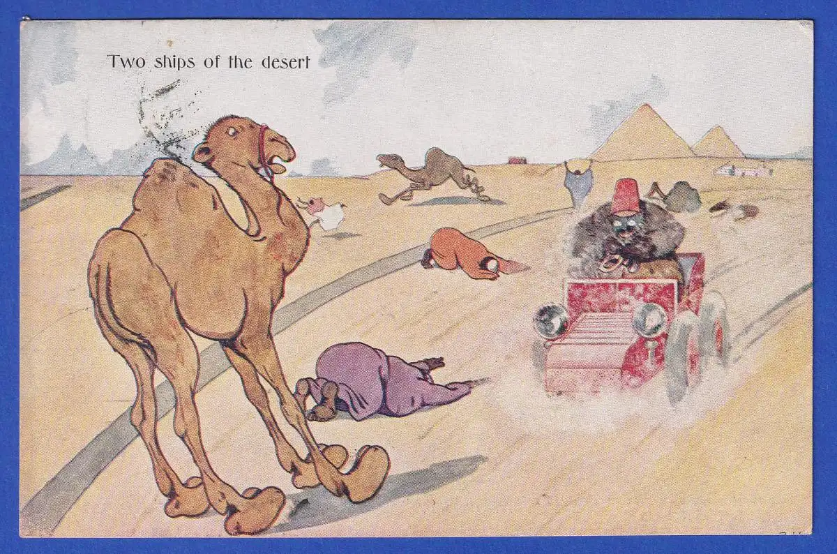 Österreich 1905 Humoristische Bildpostkarte Autofahrerkarikatur 2 Wüstenschiffe