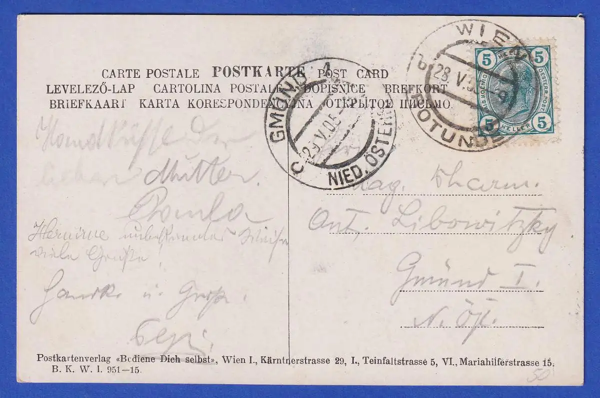 Die Karte ist adressiert an Herrn Anton Libowitzky.