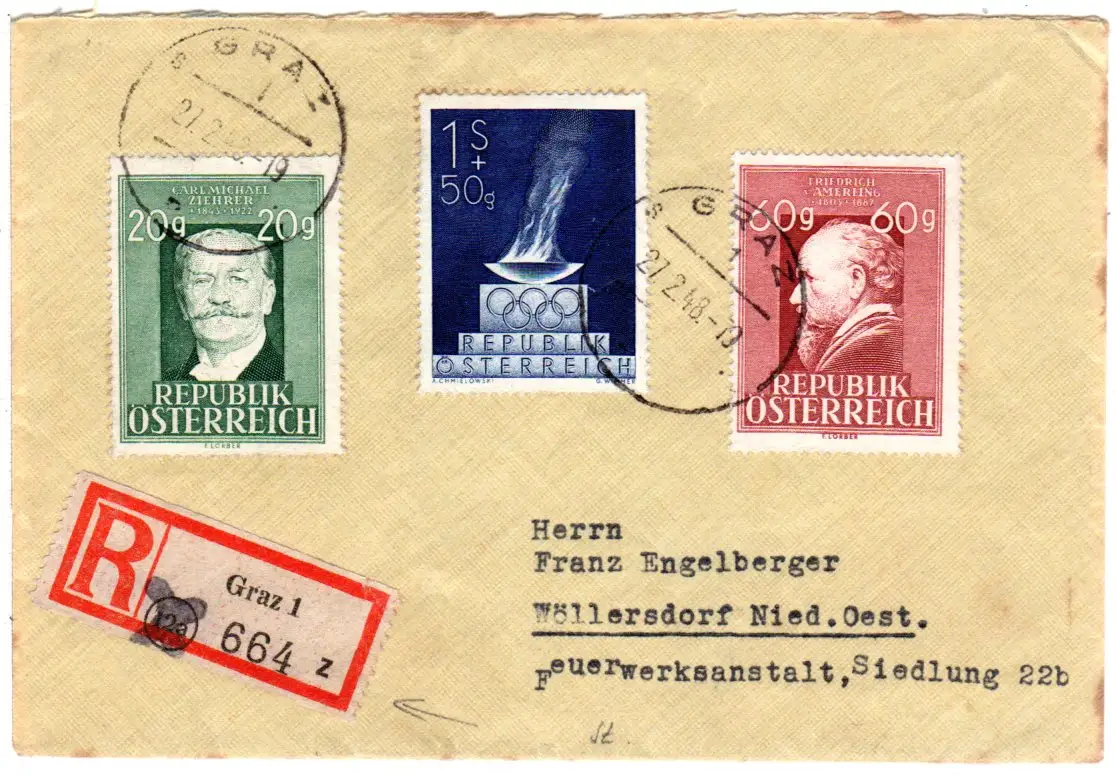 Österreich 1948, Reko-Zettel m. überstempelter PLZ auf GRAZ Einschreiben Brief