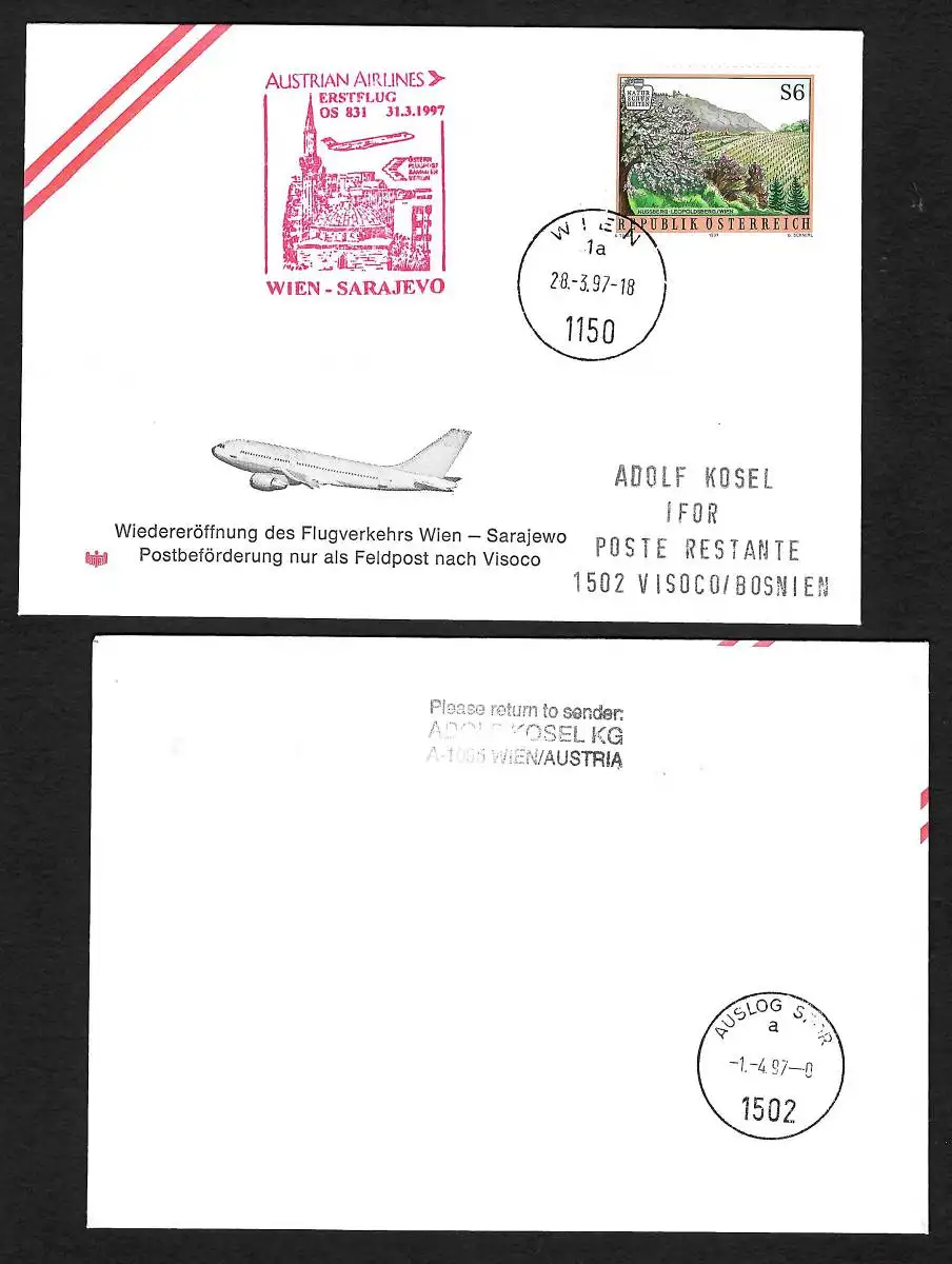 Österreich 1997: Autrian Airlines, Erstflung Wien-Sarajevo, Sonderbeleg