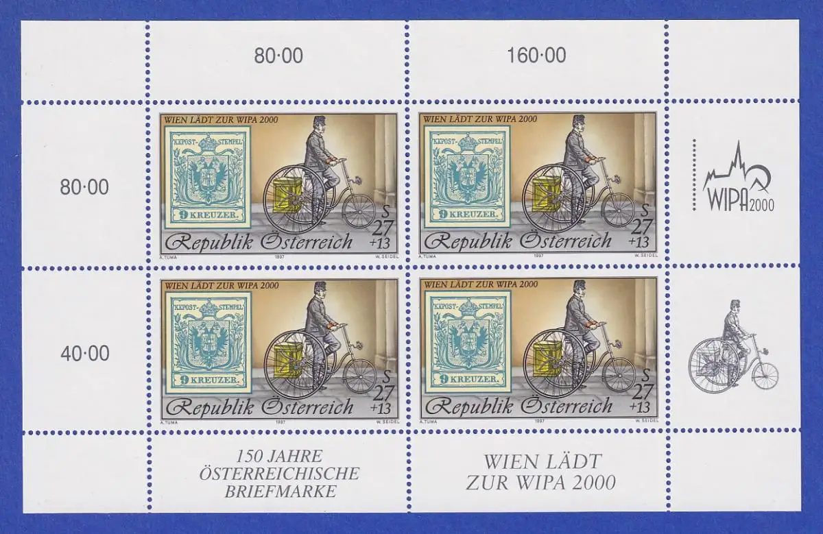 Österreich 1997 WIPA 2000 Postfahrrad Mi.-Nr. 2222 Kleinbogen **