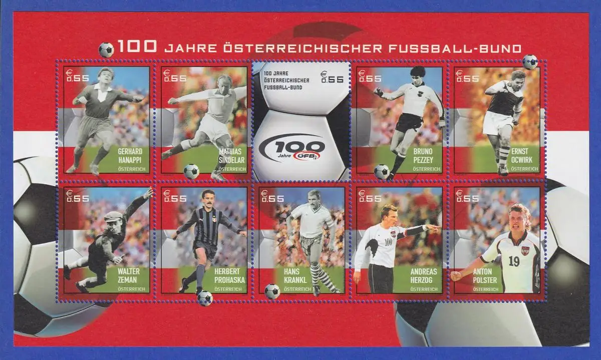 Österreich 2004 100 Jahre Fussball-Bund Mi.-Nr. 2460-69 Kleinbogen **