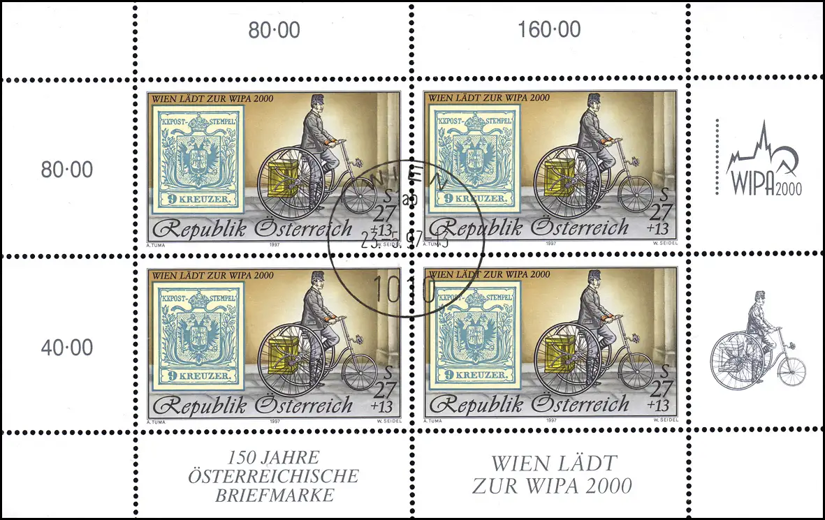Kleinbogen I mit Jahreszahl 1997 und mit Ersstagsstempel WIEN 23.9.1997