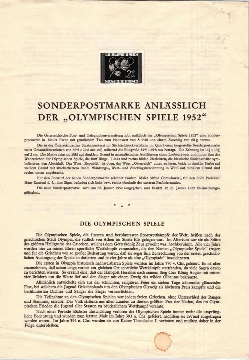 Österreich 969 als Schwarzdruck auf Erläuterungsblatt (fleckig) #JZ899