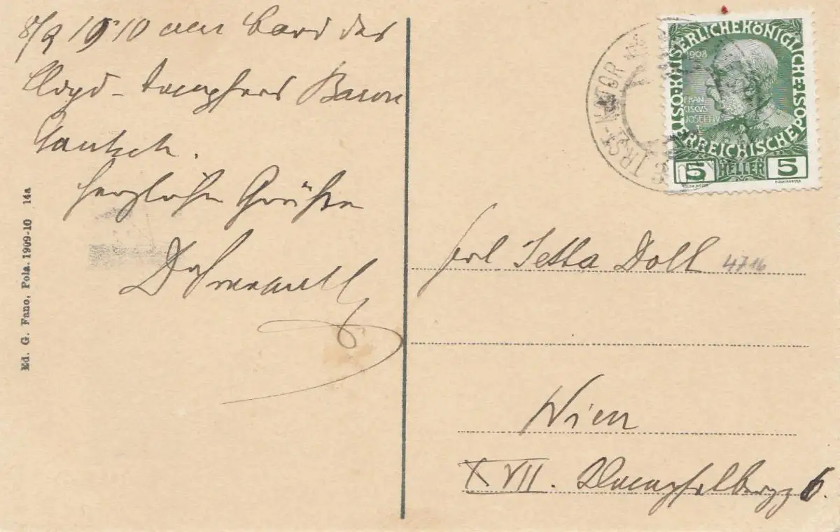 Österreich: Ansichtskarte mit Stempel Triest-Kotor nach Wien