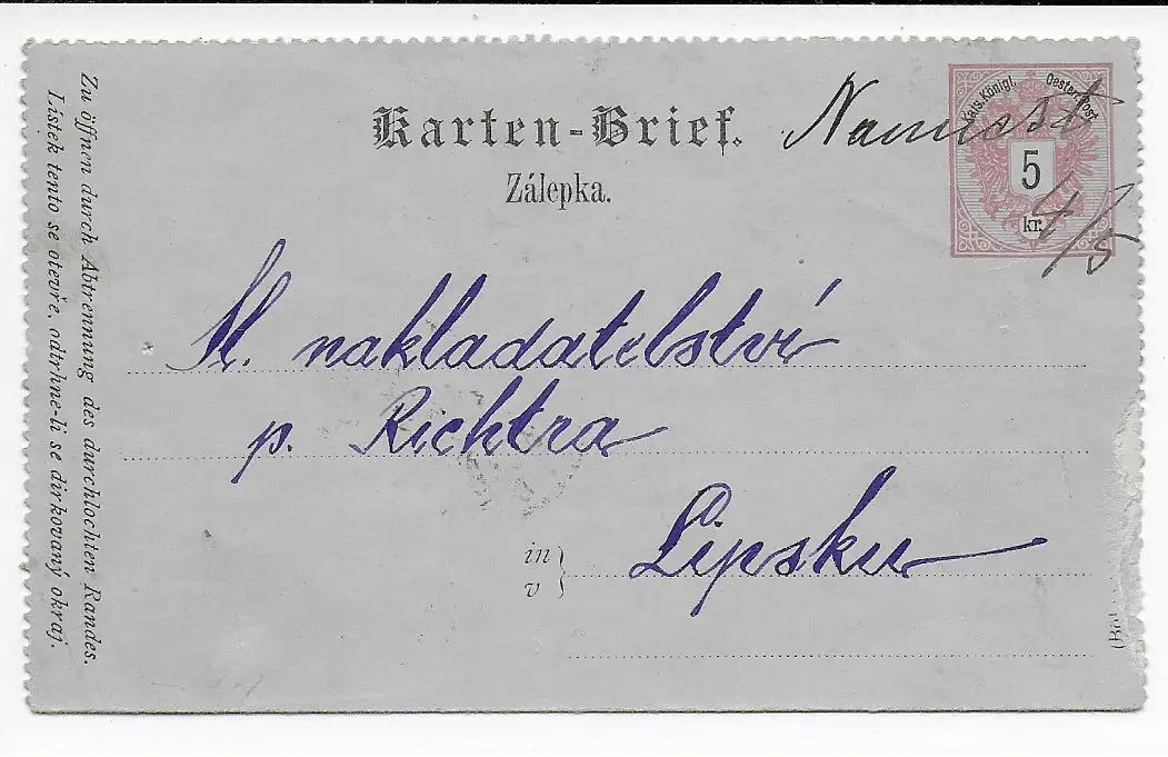 Österreich: Karten Brief Nemeit 1890 mit Textinhalt