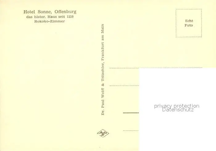 Offenburg Hotel Sonne Rokoko Zimmer Offenburg postalisch nicht gelaufen 1921-1965 Erhaltung siehe scans [KathaD81] Kathoren