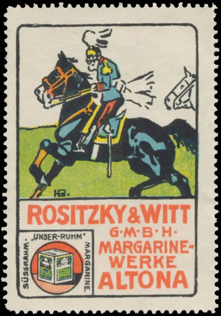 Unser Ruhm Margarine, Hamburg, Größe/Zustand: 6x4 , guter Zustand, Original alte Reklamemarke die seinerzeit für die Werbung benutzt wurde