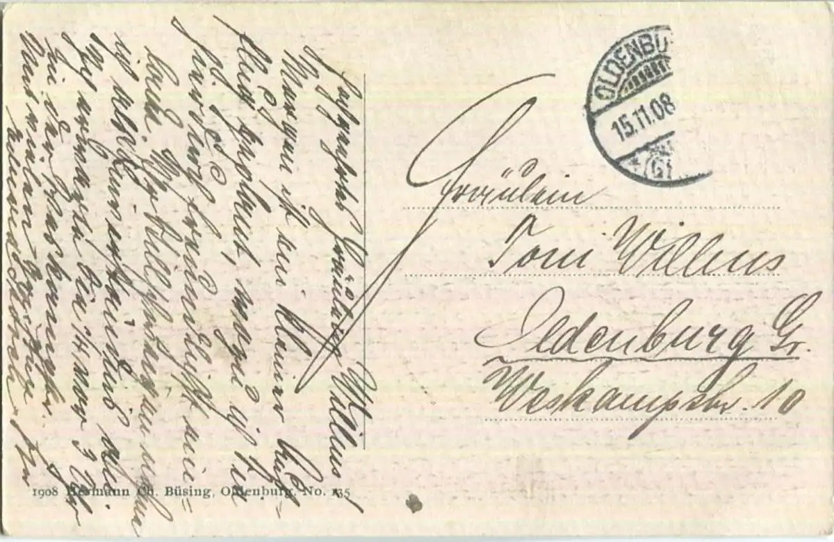 Oldenburg - Hunte - Augusteum - Palais - Verlag Hermann Ch. Büsing Oldenburg - Briefmarke entfernt (G2603) gel. 1908