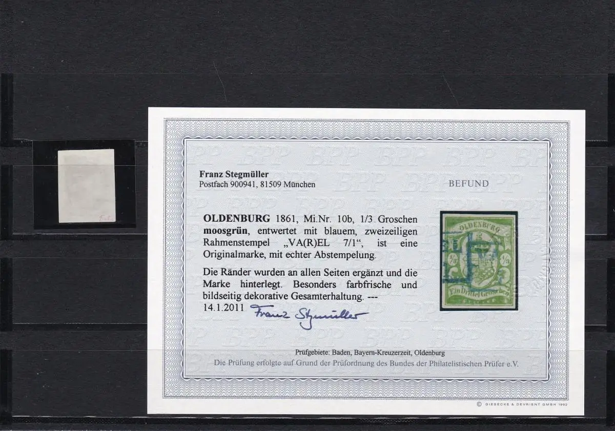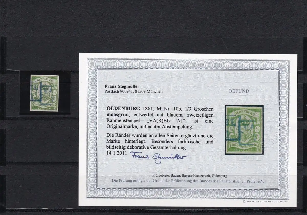 Oldenburg: MiNr. 10b, gestempelt mit BPP Befund