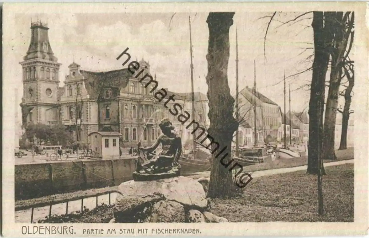 Oldenburg - Partie am Stau - Fischerknaben - Verlag Hermann Ch. Büsing Oldenburg - Briefmarke entfernt (G2602) gel.