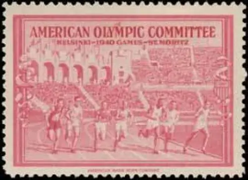 American Olympic Commitee, Helsinki, St. Moritz, Sport, Olympische Spiele, Olympia, Größe/Zustand: 3x5 , guter Zustand, Original alte Reklamemarke die seinerzeit für die Werbung benutzt wurde