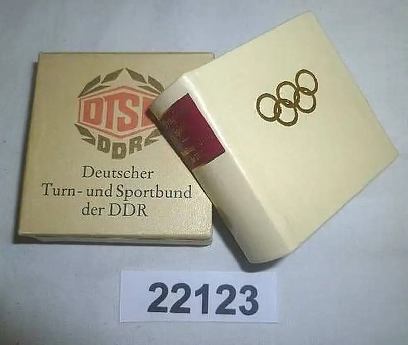 Olympische Spiele - Medaillengewinner der DDR Werner Schreier Offizin Andersen Nexö, Leipzig Jahr 1987 Seitenanzahl 370 guter Zustand, Titelblatt gelockert reich bebildert, Ledereinband mit goldgeprägten olympischen Ringen und Rückentitel im Pappschuber mit Aufdruck DTSB Deutscher Turn- und 10760bund der DDR, Format 6 x 6,2 cm Nummer 22123