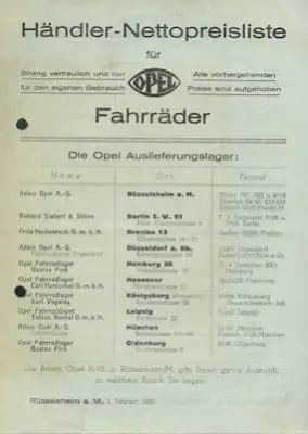 Opel Fahrräder Händler-Preisliste 2.1932