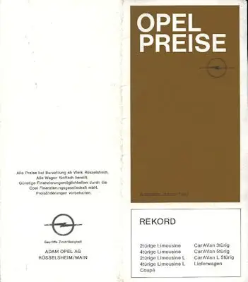 Opel Rekord C Preisliste 1.1967