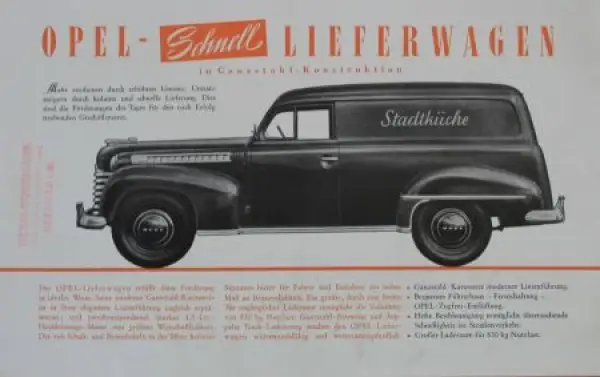 Opel Schnell-Lieferwagen 1,5 Liter Modellprogramm 1950 Automobilprospekt (0823)
