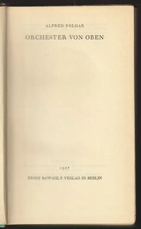 Bln., Rowohlt 1927. 5.-9. Tsd. 326 S. OLn. Rücken etw. gebleicht u. berieb.