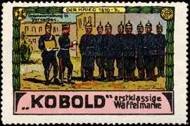 Der Krieg 1870 - 71. Kobold, erstklassige Waffelmarke., Größe/Zustand: 4x6 , guter Zustand, Original alte Reklamemarke die seinerzeit für die Werbung benutzt wurde