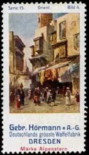 Serie 15, Bild 4, Deutschlands grösste Waffelfabrik, Marke Alpenstern, Größe/Zustand: 3x6 , guter Zustand, Original alte Reklamemarke die seinerzeit für die Werbung benutzt wurde