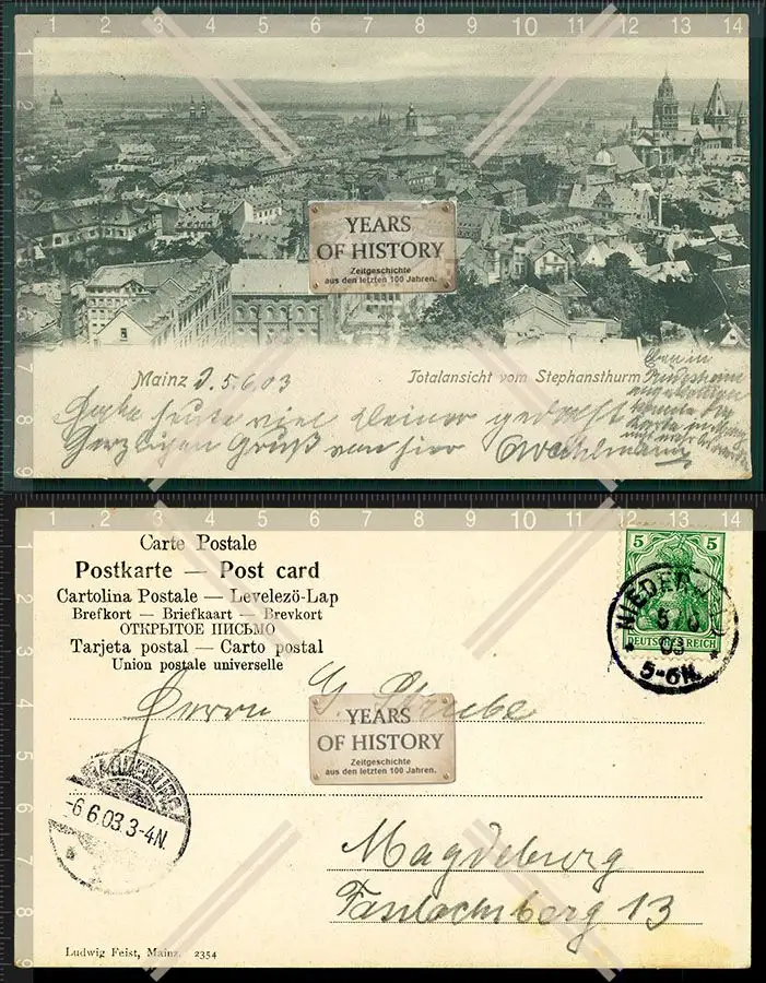 Orig. AK Mainz Rhein Totalansicht Stephansturm 1903 gelaufen M2022-05-12-010Orig. AK Mainz Rhein Totalansicht Stephansturm 1903 gelaufen
