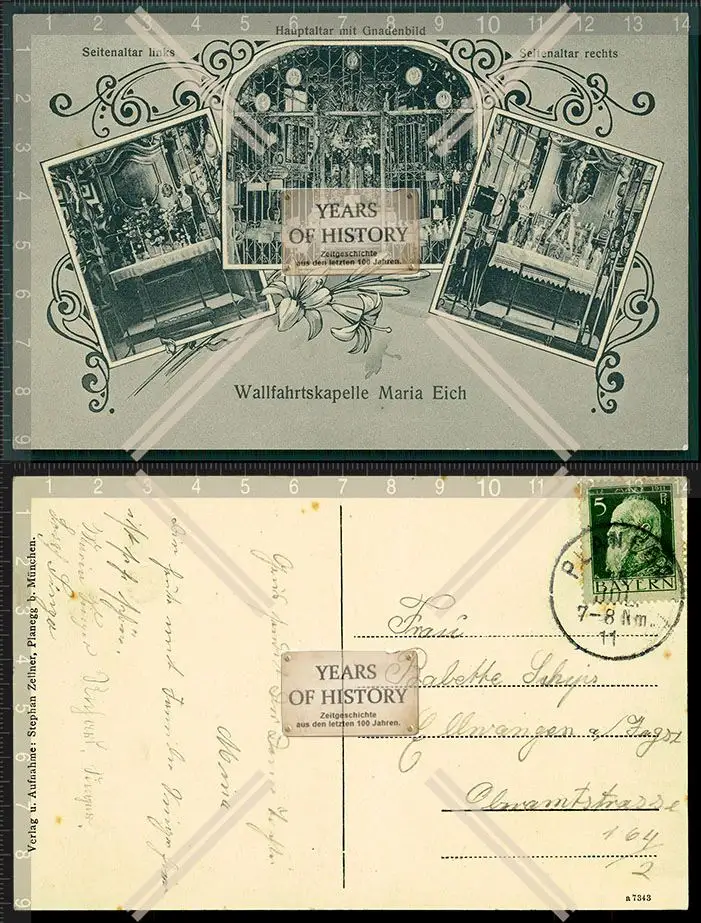 Orig. AK Maria Eich Augustinerkloster Wallfahrtskirche Planegg Kapelle Seitenaltar Gnadenbild in Oberbayern 1911 gelaufen M2022-04-23-014Orig. AK Maria Eich Augustinerkloster Wallfahrtskirche Planegg Kapelle Seitenaltar Gnadenbild in Oberbayern 1911 gelaufen