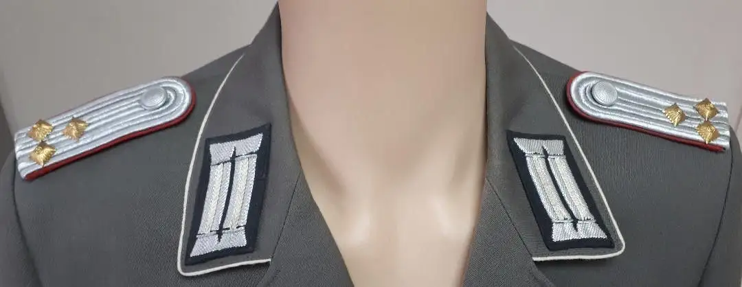 Es waren ab 1953 normale NVA Berufsoffiziers- bzw. Berufsunteroffiziersuniformen, allerdings mit der sonst nicht gebräuchlichen Waffenfarbe Bordeauxrot - und dabei gab es noch eine Besonderheit, die Farbe der Schulterstücke war Bordeauxrot, die Farbe der Kragenspiegel war dagegen weiss.