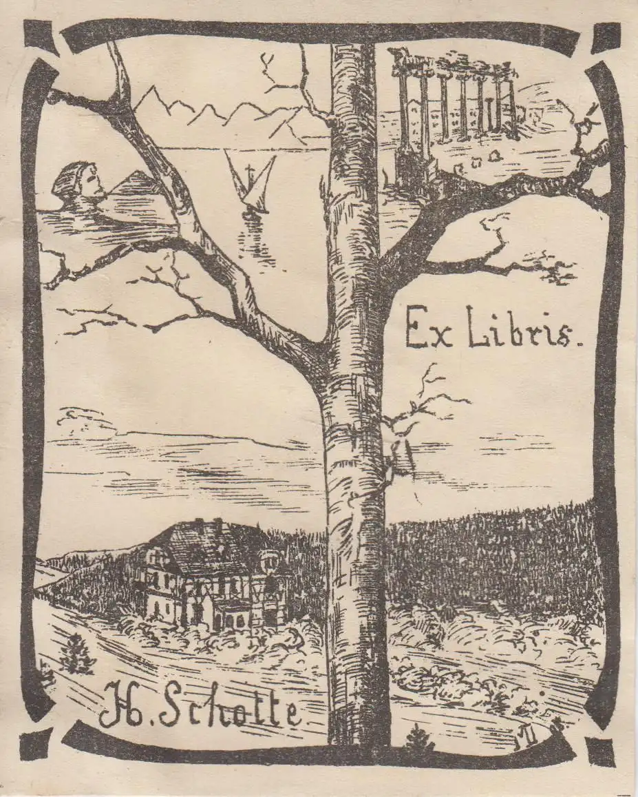 Schlagworte: Exlibris, Grafik, Original-Druck, Baum, Haus