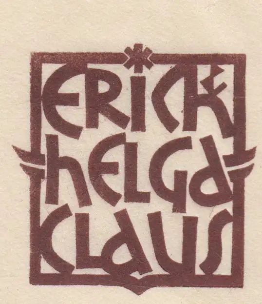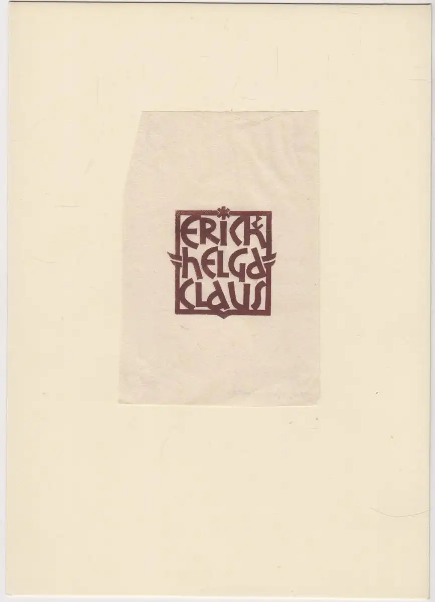 Bemerkungen: Zustand: Gut. Blatt minimal berieben // Exlibris für Erick und Helga Claus. Der Druck wurde auf Rückwandkarton geklebt und hat selbst ein Maß von 11,5 x 7,5 cm.