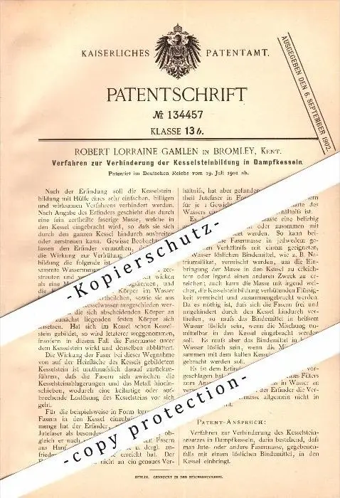 Original Patent - Robert L. Gamlen in Bromley , Kent , 1901 , Proceedings against scaling in boilers , London !!!