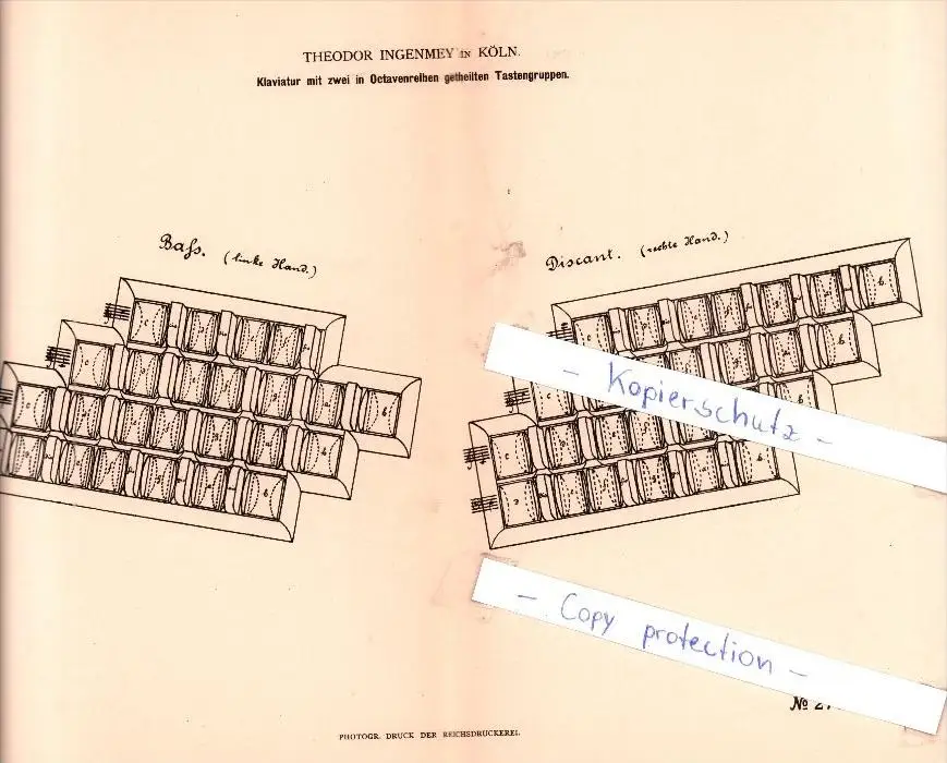 Original Patent - T. Ingenmey in Köln , 1884 , Klaviatur , Musikalische Instrumente !!!