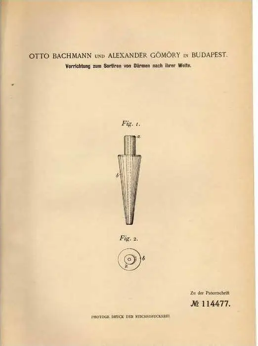 Original Patentschrift - A. Gömöry in Budapest , 1900, Sortierung von Darm , Fleischerei , Fleischer !!!
