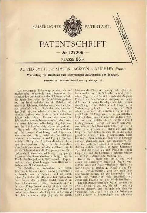 Patentinhaber: Alfred Smith und Simeon Jackson in Keighley , England