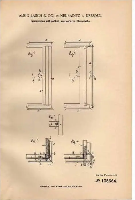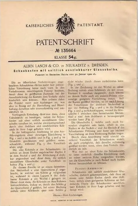 Original Patentschrift - Albin Lasch & Co in Neu Kaditz , 1902 , Schaukasten !!!