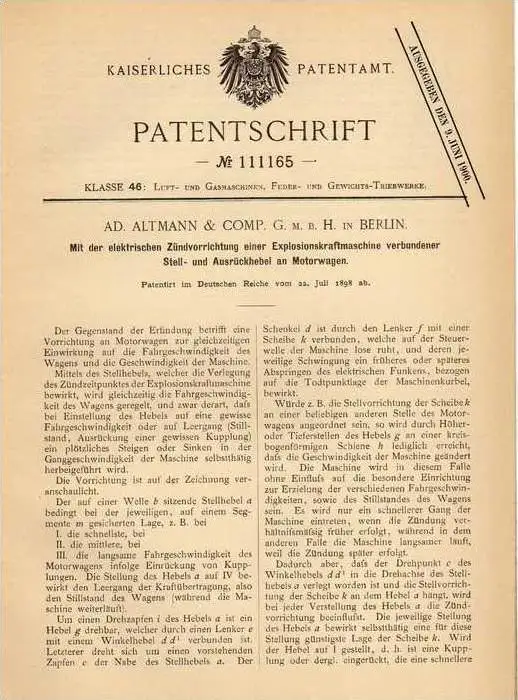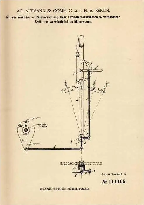 Original Patentschrift - Altmann & Comp. GmbH in Berlin , 1898 , Ausrückhebel an Motorwagen , Automobile !!!