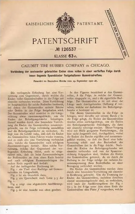 Original Patentschrift - Calumet Tire Rubber Company in Chicago , Reifen , 1900 !!!