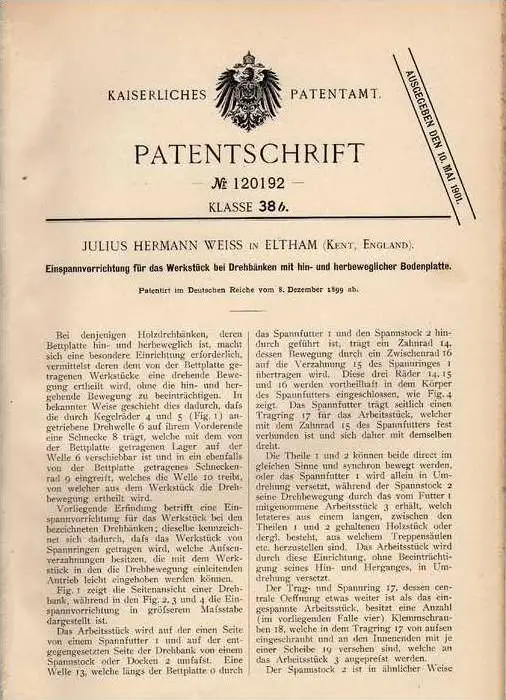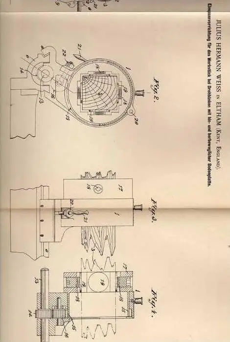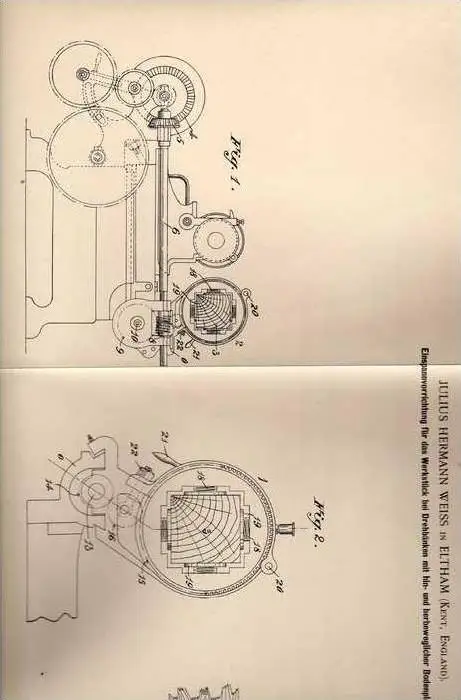 Original Patentschrift - Drehbank , 1899 , J. Weiss in Eltham , Kent in England !!!