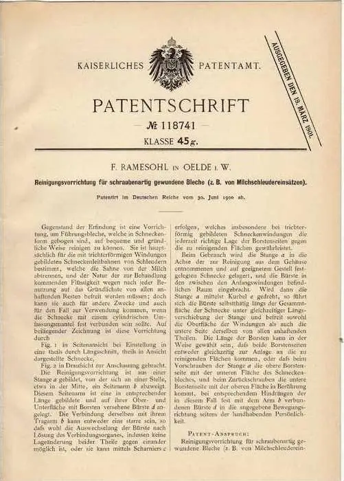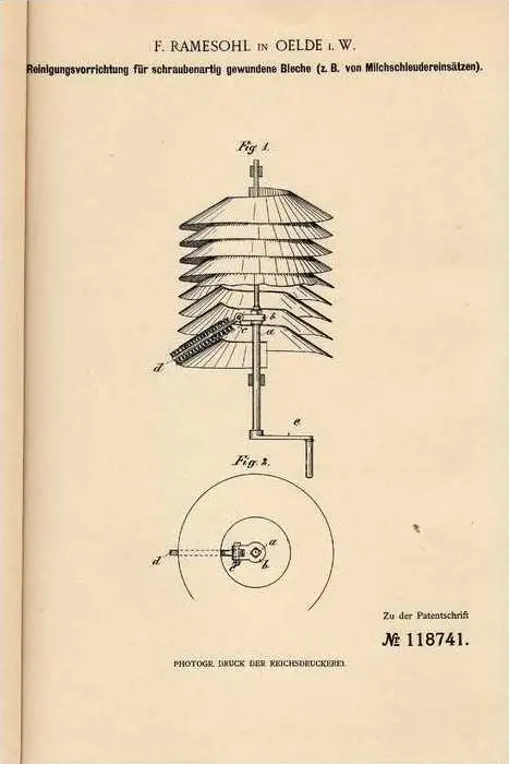 Original Patentschrift - F. Ramesohl in Oelde i.W. , 1900 , Reinigungsapparat für Milchschleuder !!!