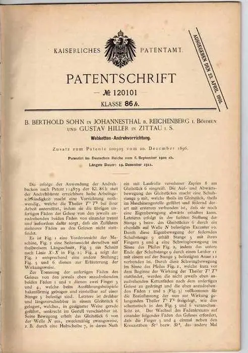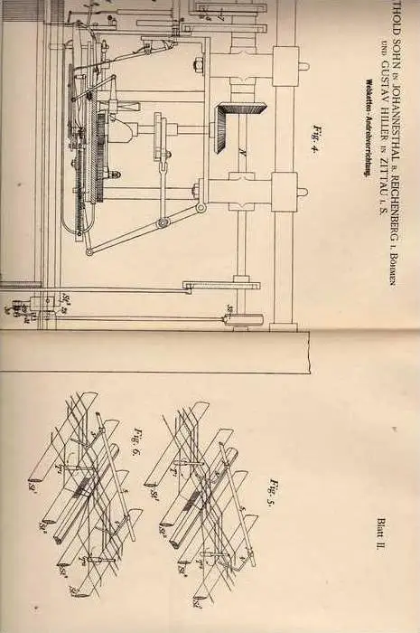 Original Patentschrift - G. Hiller in Johannesthal und Zittau , 1900 , Webstuhl , Webketten , Weberei !!!