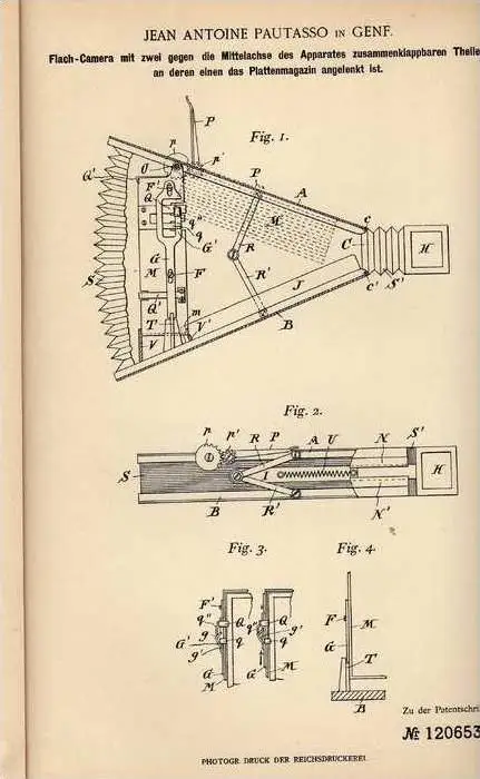 Original Patentschrift - J. Pautasso in Genf , 1899 , Flach - Camera , Photographie !!!