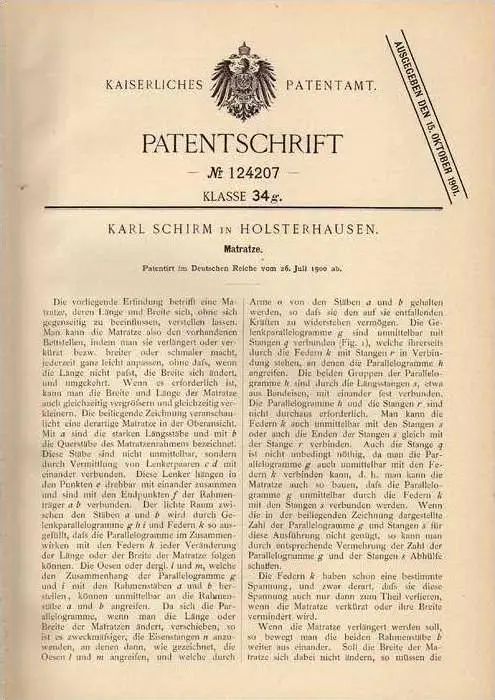 Original Patentschrift - K. Schirm in Holsterhausen , 1900 , Matraze , Bett !!!