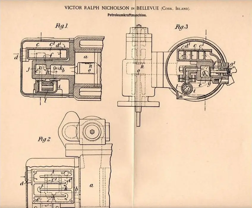 Original Patentschrift - V. Nicholson in Bellevue , Cork , Ireland , 1902 , Petroleum - Machine , Kraftmaschine !!!