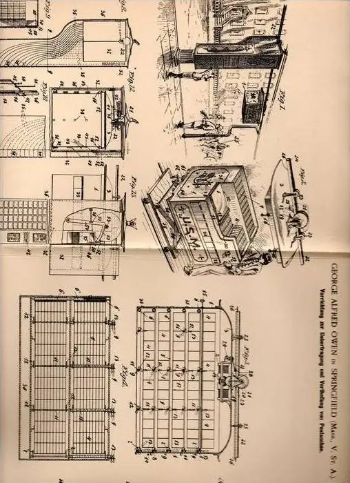Original Patentschrift - Verteileranlage für Postsachen , Post , 1901 , G. Owen in Springfield , USA , Postbote , USM !!