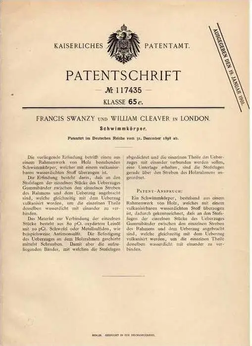 Patentinhaber: Francis Swanzy und William Cleaver in