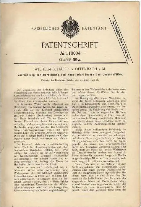 Original Patentschrift - W. Schäfer in Offenbach , 1900 , Ledermaschine !!!