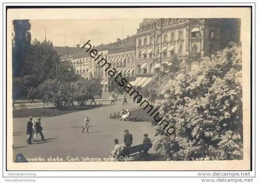 Oslo - Eidsvolds plads - Carl Johans gate - Foto-AK - Eneret S. Gran (G22245) gel. 1930