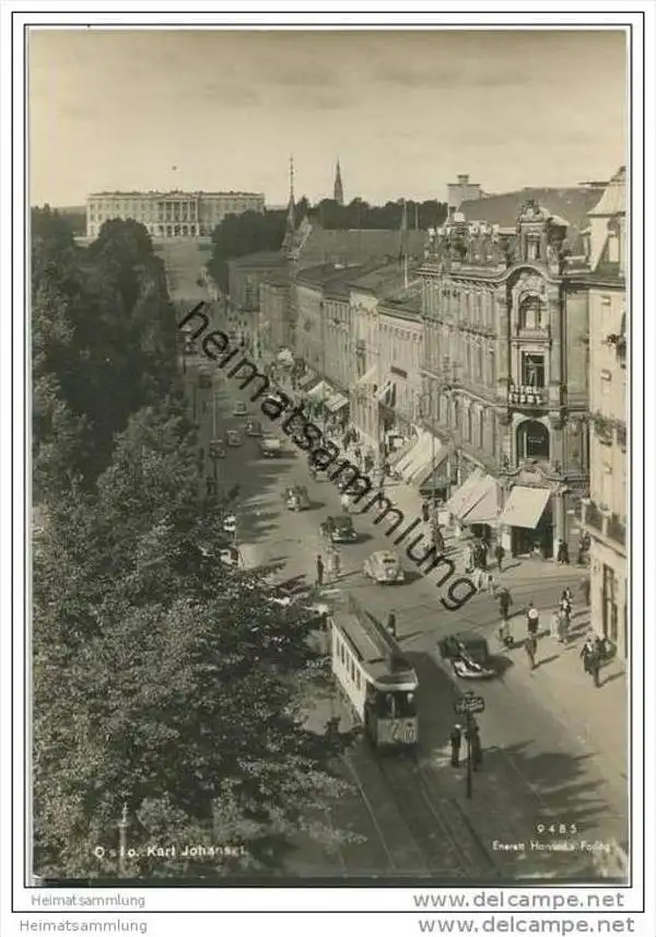 Oslo - Karl Johansgt - Strassenbahn - Foto-AK Grossformat