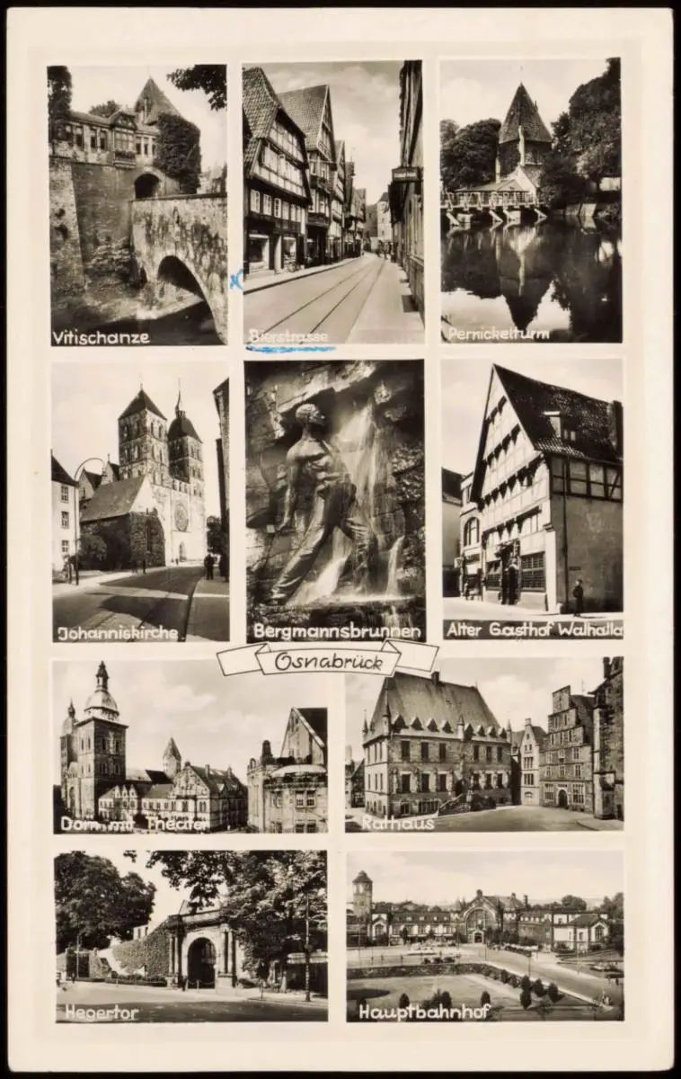Osnabrück Mehrbild-AK mit Bierstrasse, Vitischanze, Gasthof Walhalla uvm. 1957